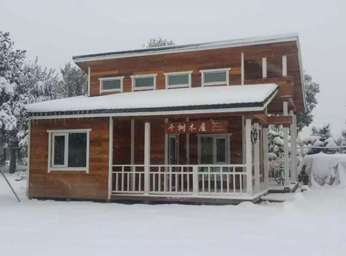實(shí)木堆砌而成,它會比輕型木屋更堅固耐久,居住舒適